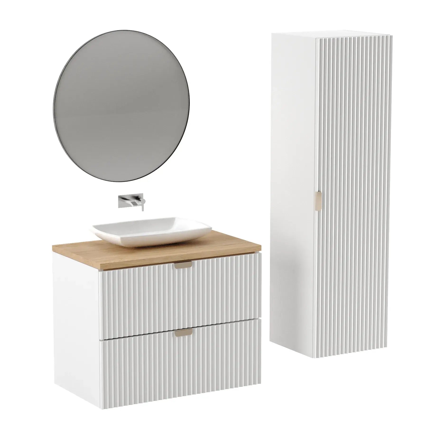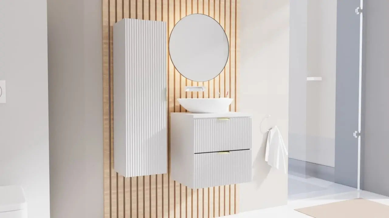 Dulap înalt baie 120 cm Willy – Alb | Eleganță și funcționalitate în alb cu fronturi striate