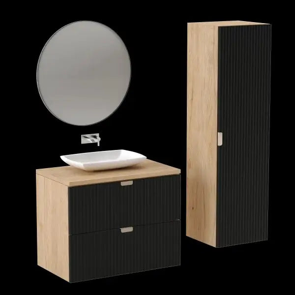 Oferiți băii dumneavoastră un aer exclusivist cu dulapul înalt de baie Willy 120 cm – Negru/Nuc. Acest mobilier de baie elegant combină negrul intens cu nuanța caldă de nuc, creând un aspect armonios și rafinat. Fronturile striate adaugă un plus de stil și oferă jocuri subtile de lumină și textură, transformând baia într-un spațiu modern și sofisticat.