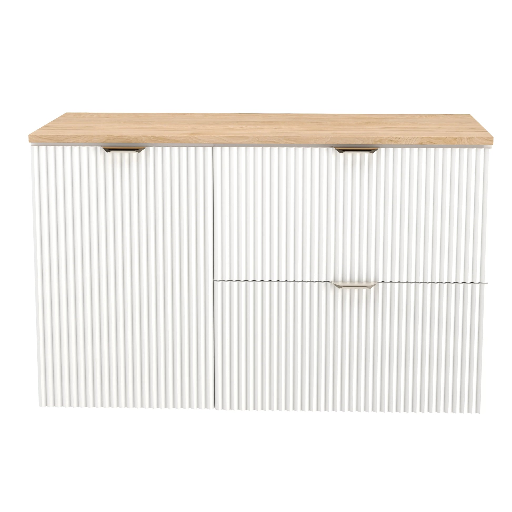 Dulap lavoar 100 cm cu coș de rufe Willy – Alb, blat Stejar Nuc – Eleganță și funcționalitate pentru baia ta