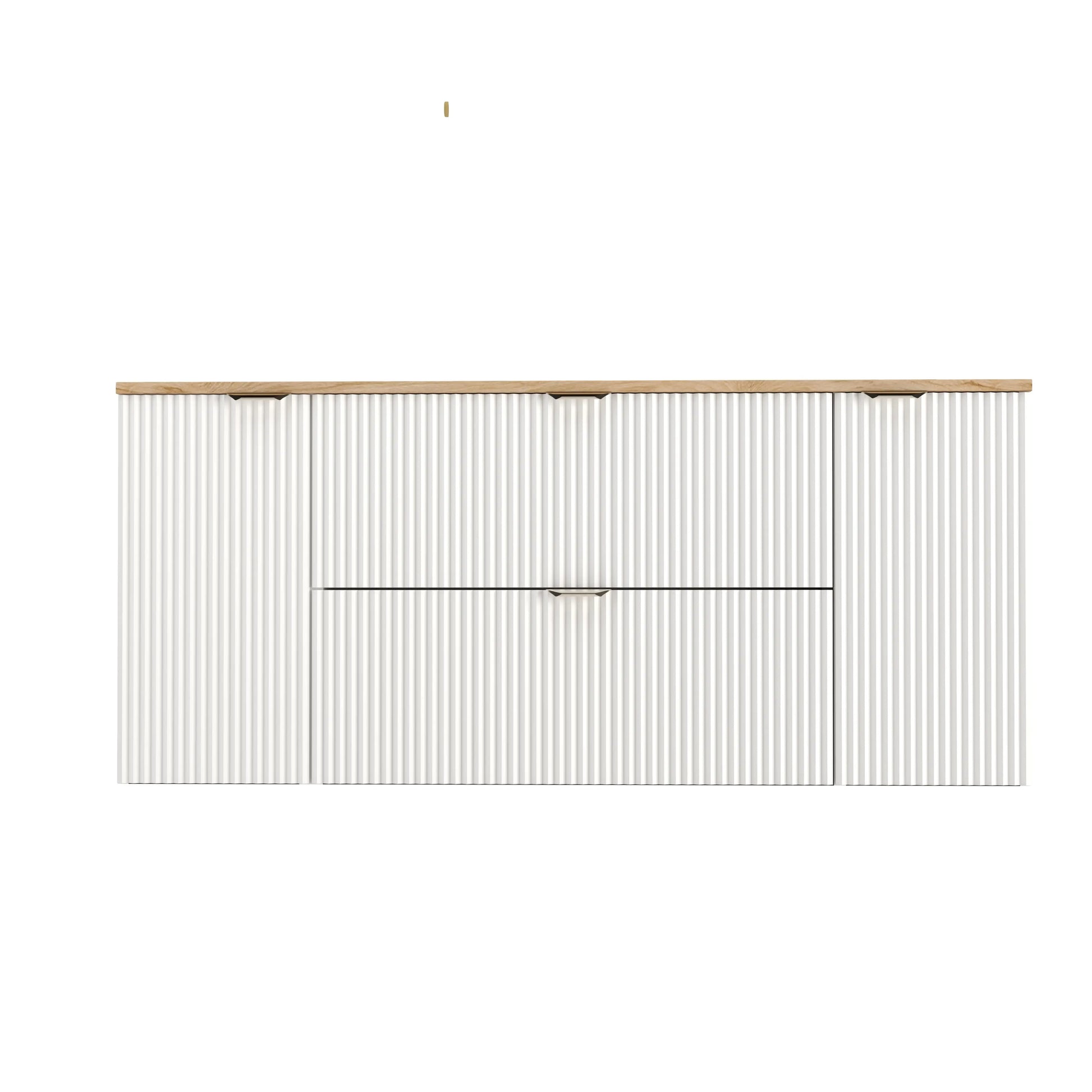 Dulap lavoar 140 cm Willy – Alb, blat Nuc, fronturi riflate, mânere aurii