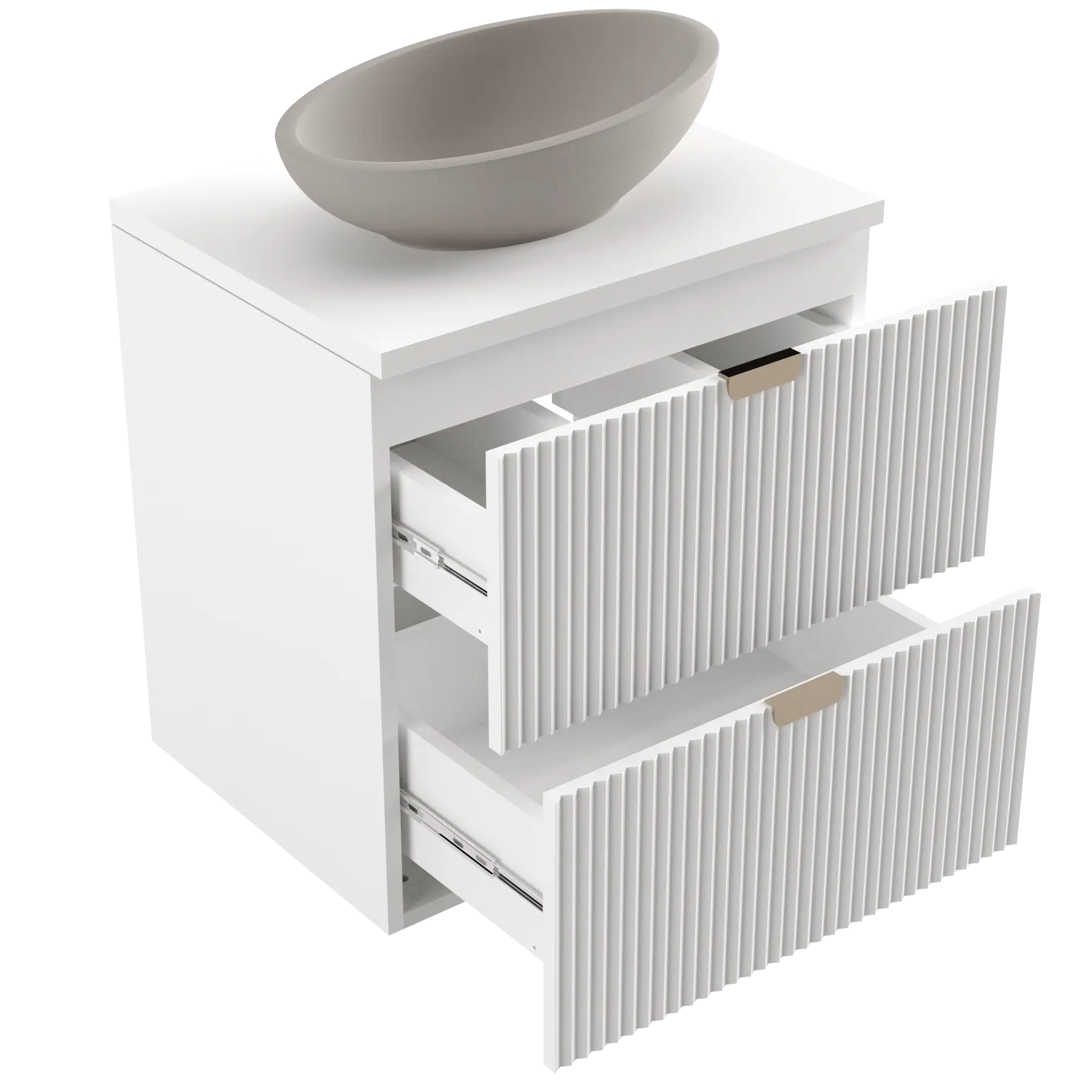 Cele 4 sertare încăpătoare și raftul lateral practic oferă suficient loc pentru prosoape, cosmetice și accesorii de baie. Compartimentarea inteligentă asigură o organizare perfectă și acces rapid la toate obiectele esențiale.