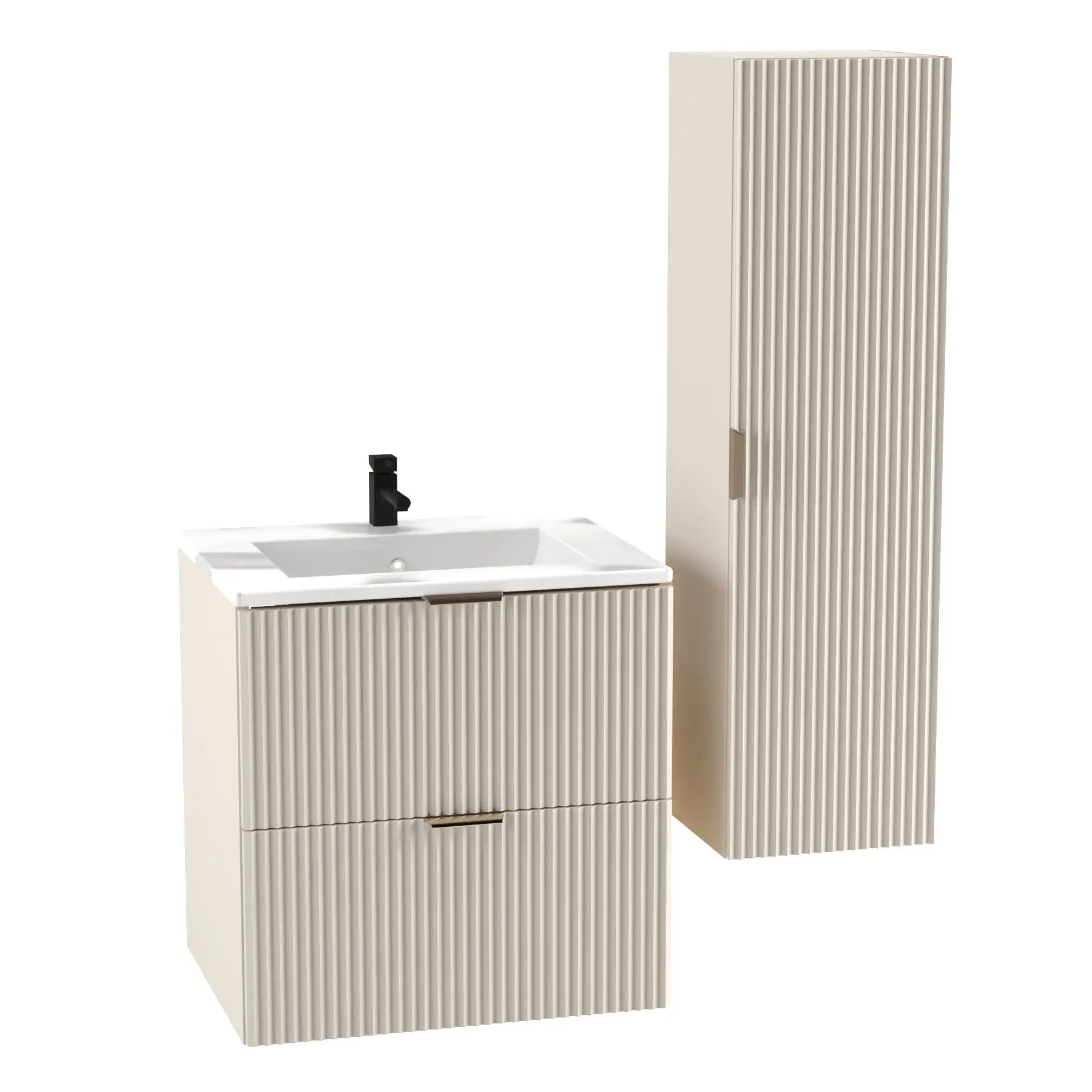 Adaugă un plus de stil și confort băii tale cu dulapul pentru lavoar 60 cm cu chiuvetă Willy – finisaj Cașmir. Fronturile striate conferă o textură elegantă și modernă, transformând mobilierul într-un element de design care atrage privirile.