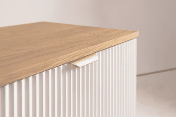 Îmbină eleganța atemporală cu funcționalitatea zilnică alegând dulapul pentru lavoar 80 cm cu raft Willy – Alb, Nuc top. Finisajul alb imaculat oferă un aspect luminos și aerisit, în timp ce blatul din nuc natural aduce o notă caldă și rafinată, perfectă pentru a crea o atmosferă armonioasă în orice baie.